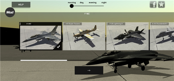 1、进入喷气式战斗机模拟器游戏,选择你想玩的战斗机;