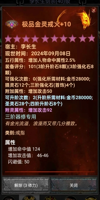 五行词缀:只有极品装备才有五行加成,金(攻击)木(生命)水(闪避)火(命中)土(防御),同时该加成为总加成而非基础加成。