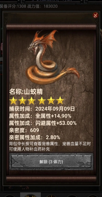 宠物选择系统会在每小时的固定时间刷新,每个人对应的刷新时段各不相同,每次刷新窗口持续24分钟,大家只需选好自己方便的时间段去刷即可。前期不用执着于追求极品宠物,核心目标是顺利过图,只要能打得过守门怪就足够,后续总会遇到更优质的选择!等到宠物等级到四级时,可以专门刷一只属性较好的闪避型山蛟王蛇来助力过图;要是暂时卡图过不去,就优先刷装备、提升宠物的升阶等级。前期能顺利推进关卡的话,不建议花费资源去刷宠物亲密值,性价比不高。目前开放到花仙子这个宠物阶段,就可以重点投入培养了,要是能刷到极品的双闪避双气血资质,那就值得全力升阶并刷满亲密值!