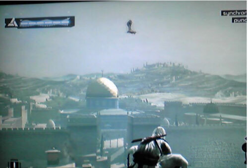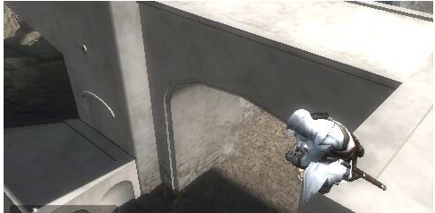 6、解决掉他之后,就按照地图指引的方向一直跑,跑到城墙边时,阿泰尔又使出了他那标志性的“耍宝”绝技——跳楼!这样就能顺利通关了。