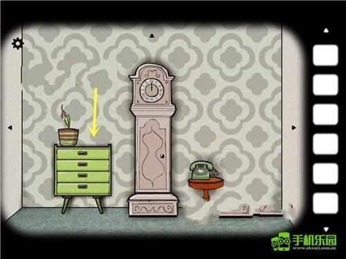 我们还是先默认面向有大型钟的那一面,在盆栽所在的柜子上拿到望远镜,接着持续点击盆栽,会看到一只手伸出来又缩回去,这时就能拿到第一块相框碎片。抽屉里能找到螺丝刀和火柴,柜子旁边还有一块碎片,房间里钟的上方也能拿到一块碎片。