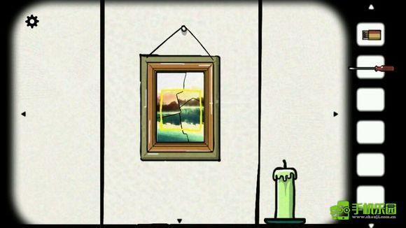 我们回到客厅,将相框点亮,它后面有个专门放置方块的空位,把方块放进去就行。之前点火是为了照亮方块,要是只有方块没有火也不行。之后放下相框盖住方块格子,点击几次就能通关了。