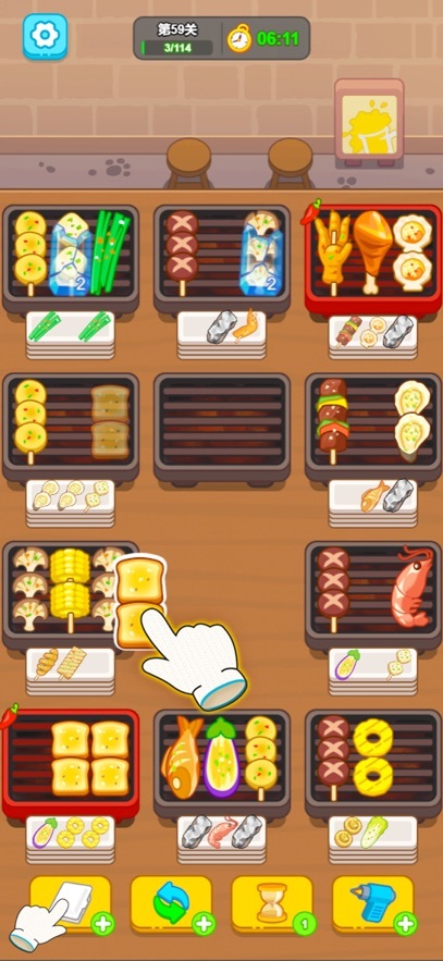 1、游戏的操作简单,点击就能烹饪烧烤,快速上手游玩。