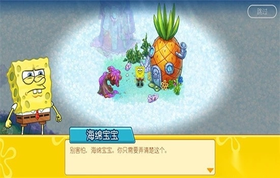 2、进入游戏剧情,发现海底有大量果酱垃圾需要清理,可选择跳过剧情。