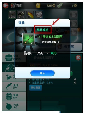 强化成功后,鱼竿的伤害会得到提升。伤害的高低决定了每次消耗鱼体力的多少,伤害越高,单次消耗的体力就越大。若想钓获稀有大鱼,玩家需要配备伤害较高的钓具。