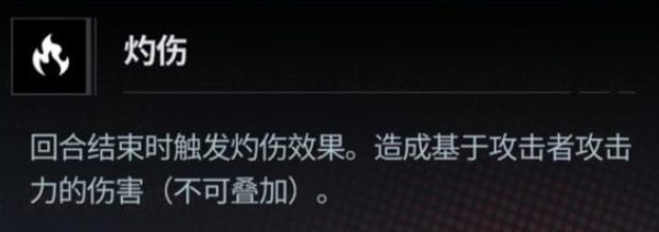 1、对敌方发起烧伤行动后,会造成等同于施加者攻击力百分比的伤害,该效果不可叠加。