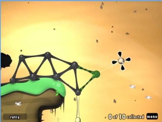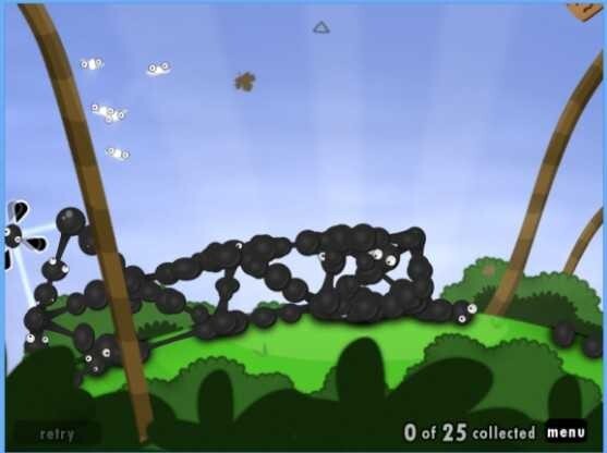 2. 游戏部分包含5个章节,玩家需借助名为粘性豆袋的粘性小球搭建大型结构。