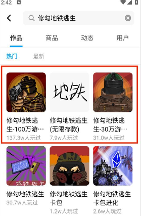 2、通过搜索框搜索“修勾地铁逃生”,点击试玩。
