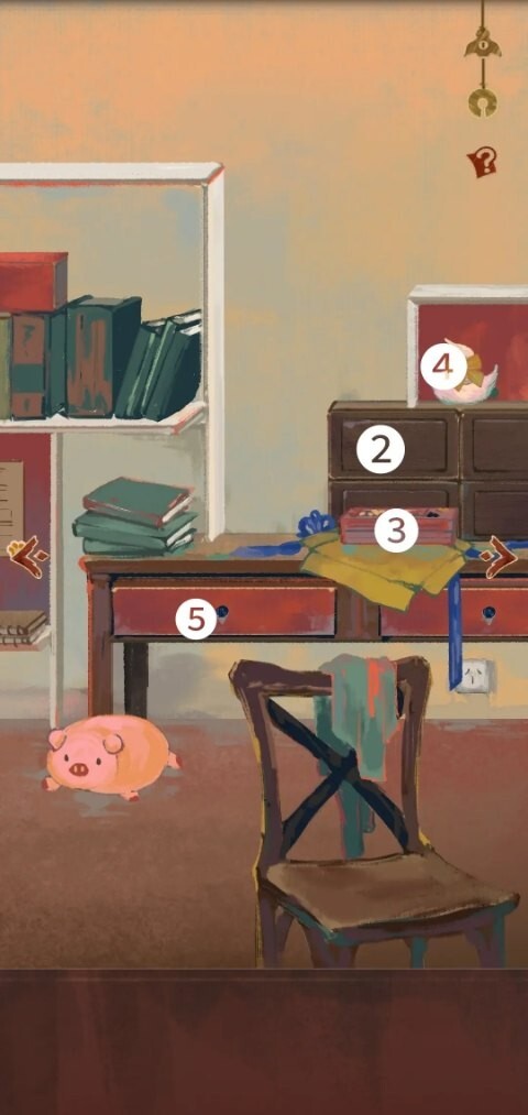 ③数字解密获得行李箱里⑤抽屉钥匙下半部分