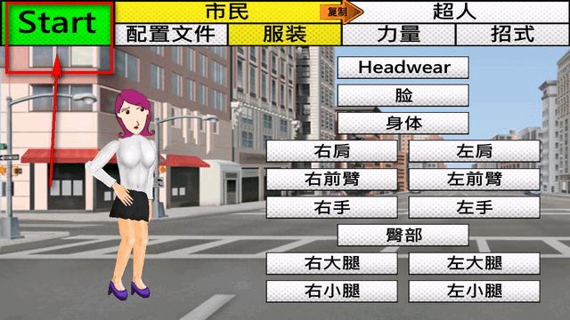 5、选定英雄后,能够对其信息进行更改,还可以修改服装、力量属性以及招式等内容。