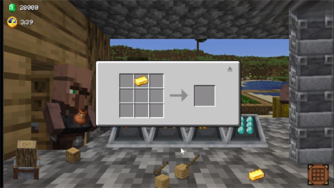 4、借助工作台来组装各类物品,当物品被完美制作完成后,将其交给村民,就能获取大量的绿宝石。