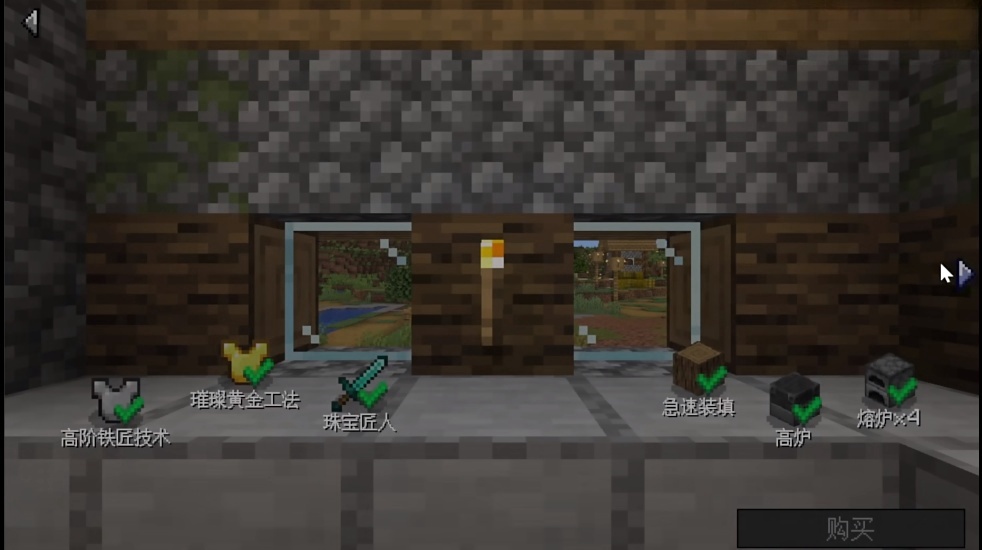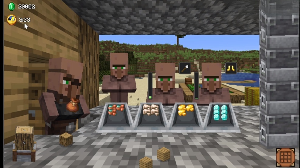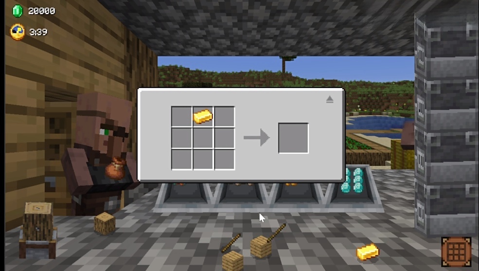 4、这时你就可以用右下角的工作台组装出各种物品,把这些物品提供给村民就能赚取绿宝石了。
