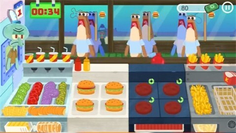 4、能够亲手制作可口的螃蟹王汉堡,通过售卖赚取硬币来解锁更多菜品,而随着菜品种类的增多,顾客的需求也会相应提升。