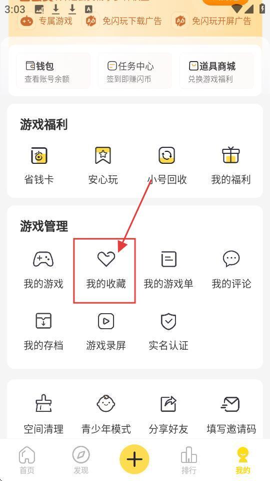 2、进入个人页面后,在【游戏管理】区域找到【我的收藏】选项,点击它就能查看收藏的游戏啦。