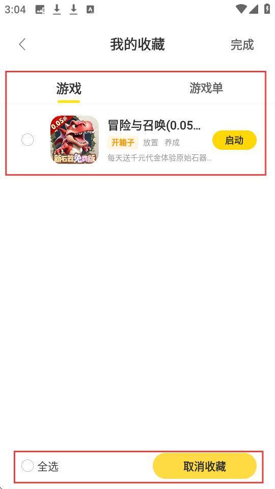 4、点击【编辑】后,能看到收藏游戏前的选择框,还能【全选】或【取消收藏】,轻松整理收藏列表。