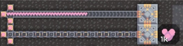 双原料对应的代表是小硅厂,除此之外还有爆炸混合物、玻璃、魂灵修理机这类物品。要是没有产出的话,纵向的传送带是可以拆除的。只做其中一边也完全没问题哦~