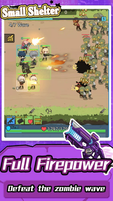 《小型庇护所中文版》是一款集合了策略塔防、角色养成和末日生存元素的安卓游戏。在核战后的废土世界里,玩家要合理安排Q版角色的位置,借助魔法融合机制来提高战斗能力,以此抵挡一波波越来越强的僵尸攻击。游戏把三间地下室作为最初的庇护所,同时结合了资源收集、角色站位策略以及动态变化的关卡难度,创造出既紧张又充满欢乐氛围的生存挑战。玩家需要在有限的网格区域里布置角色,利用他们的专属技能和武器特点来构建防线,并且通过角色合并、封印系统来重新调整阵容,不断探索最有效的战斗组合,从而体验到从弱小逐渐变得强大的成长乐趣。