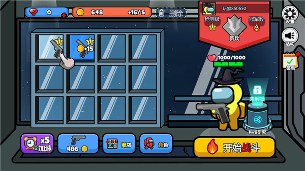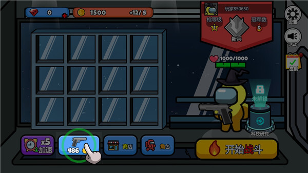 1、进入太空大逃杀游戏后,可通过购买武器增强自身的战斗能力。
