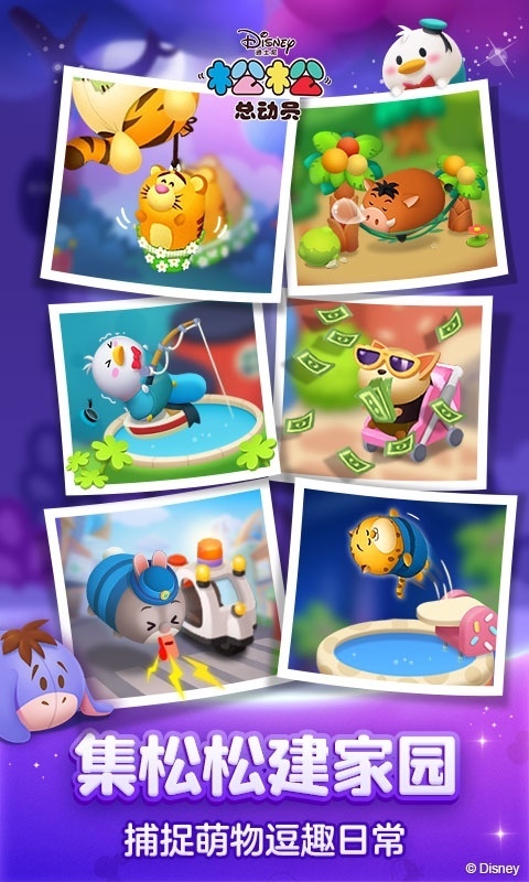 松松总动员最新版是一款融合消除、收集、养成与互动元素的多元化游戏,依托精致的画面、多样的玩法以及迪士尼正版授权角色,收获了大量玩家的青睐。不管是钟情消除类游戏的玩家,还是迪士尼动画的铁杆粉丝,都能在这款游戏里寻觅到专属于自己的乐趣。赶紧加入松松总动员的奇妙世界吧!和萌趣的松松们一同打造属于你们的梦幻乐园!