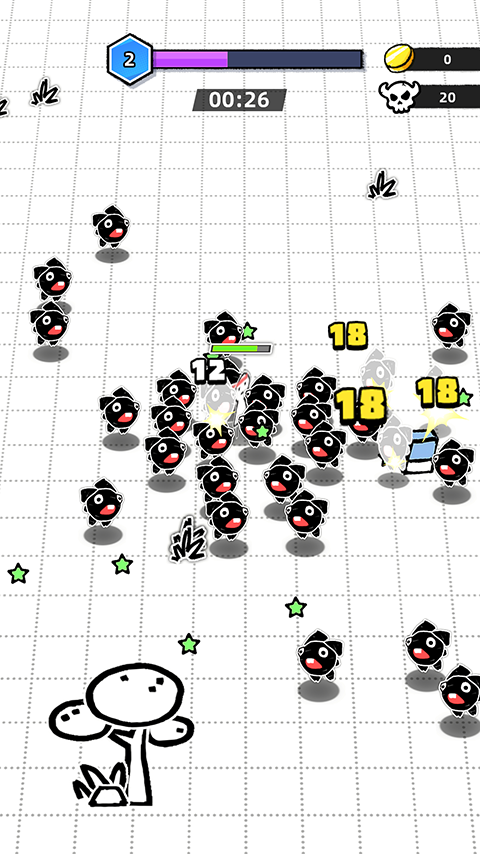 2.割草快感与随机体验:每局地图随机生成,敌人配置与道具掉落不同,搭配ROGUELIKE的技能选择机制(每轮攻击后从三个技能中选一),确保每次冒险都有新鲜感。例如,选择“文具风暴”技能可召唤大量铅笔、尺子清屏。