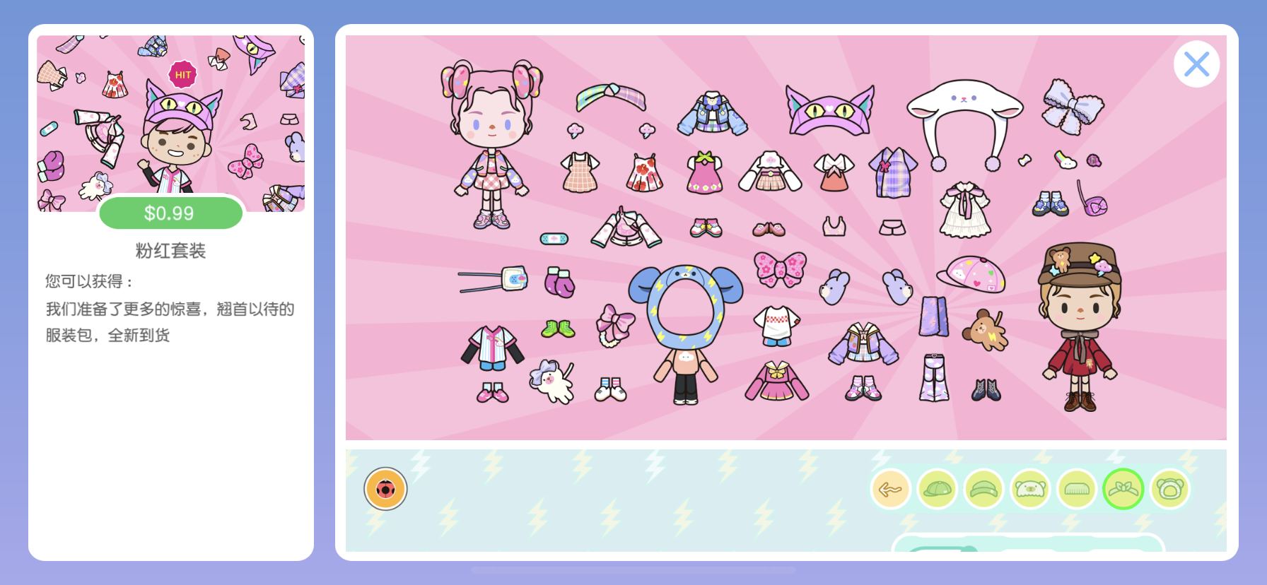 全新服装设计包内含粉色套装、波西米亚套装与马戏团套装,更有超100个自定义功能!