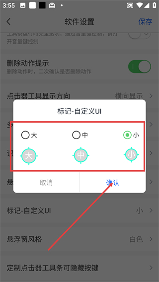 4、在【标记-自定义UI】弹窗中选定样式后,点击【确认】按钮就能应用此设置了。