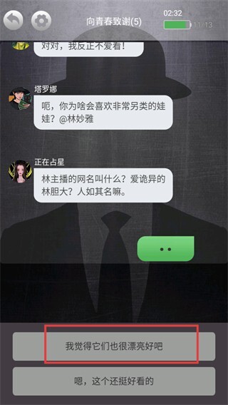 4、用红框选中【我觉得它们也很漂亮好吧】这条回应来推动剧情发展。