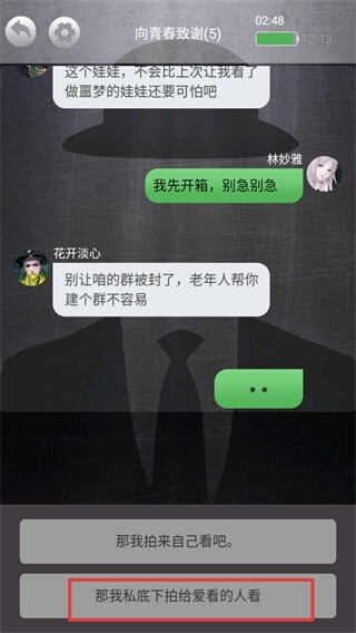 2、【向青春致谢(5)】,点击【友友们,我新买的怪娃娃到了!】来推进剧情。