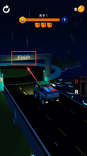 3、抵达终点:驾驶到“Finish”标牌所在位置,即可完成天卡关卡。