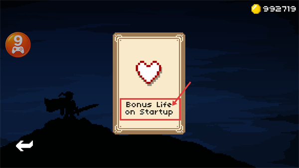 2、解锁【Bonus-Life-on-Startup】效果后,每次开启关卡时都能额外获取1点生命值,从而提升生存能力。