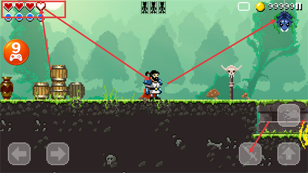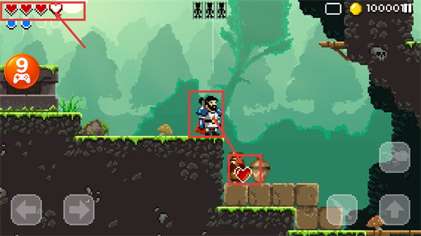 4、靠近场景里的【红心道具】进行拾取,能够直接补充角色的【生命值】,增强关卡中的续航能力。