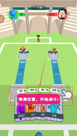 4、战斗准备:在战斗准备界面,点击“填满位置,开始战斗”按钮即可启动游戏。