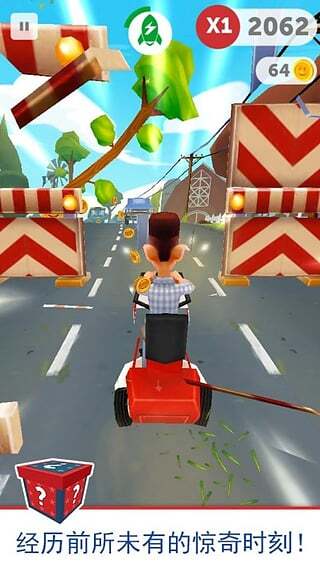 2、游戏的操控方式是左右滑动屏幕来控制阿甘,操作模式相对传统,和《地铁跑酷》的玩法比较相似。玩家只需通过左右或上下滑动屏幕,就能让阿甘做出各种动作,以此躲避车辆和障碍物。游戏运行十分流畅,核心考验的是玩家的反应能力。
