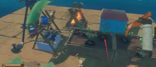 1、首先进入游戏后,在木筏上准备好淡水收集器、火、床等生活必需品。
