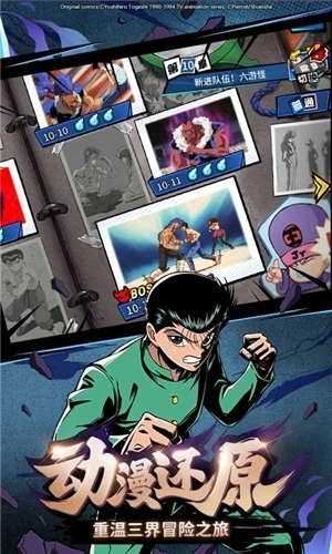 幽游白书免费版改编自经典动漫的RPG游戏《幽游白书》,既能让你重温童年时的经典动漫剧情,又能让你在游戏里体验到流畅的指尖微操乐趣!赶紧开始游戏体验吧!