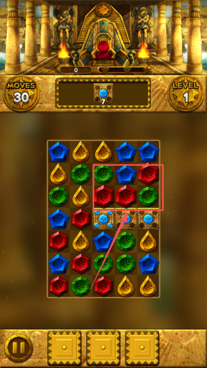1、聚焦 “剧情三消 + 遗产探索”:核心是 “连珠宝、消目标、助皇帝、寻遗产”,将复古三消与古老王国剧情结合,区别于普通消除游戏。