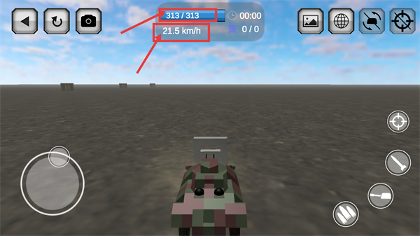 4、进入测试驾驶界面后,留意顶部显示的【313/313】状态信息和【21.5-km/h】速度数据,借助左侧摇杆来操控车辆行进。