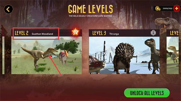 1、打开【GAME-LEVELS】界面,挑选已解锁的【LEVEL-2-Gusthon-Woodland】进入该关卡,或者点击【UNLOCK-ALL-LEVELS】来解锁所有关卡。