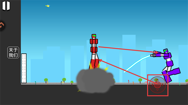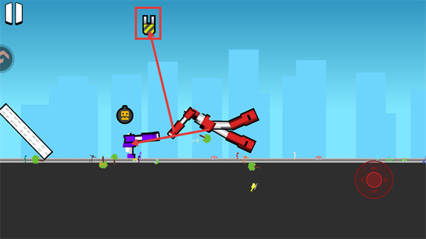 3、道具与武器库丰富多样,导弹、抓钩等装备可扭转战局,远程轰炸、拉人摔跤或用场景物品作战,拾取道具提升胜率。