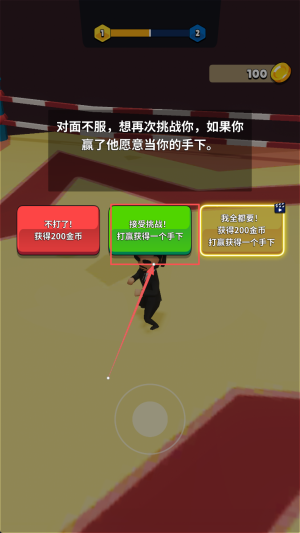 4、完成对决:在对战结束界面,可选择点击接受挑战继续战斗,也能点击“我全都要!”领取200金币奖励。