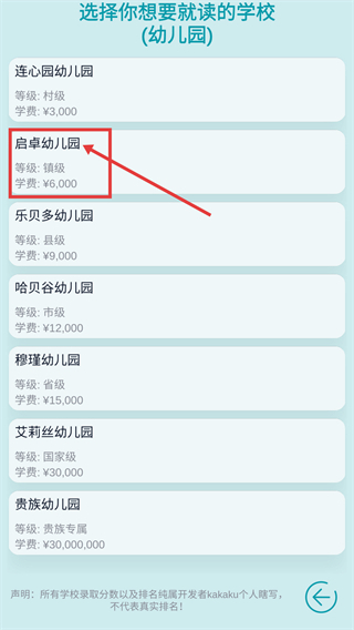 1、点击【学校】按钮,开启读书之旅,进入幼儿园选择界面。
