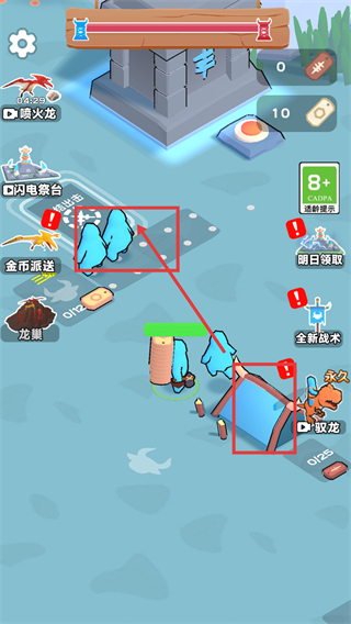 2、部落建设与恐龙训练形成联动机制,收集的物资既用于搭建营地、升级防御建筑,又能强化恐龙训练效果。