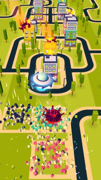游戏有着趣味十足的玩法:收集星星解锁新船,触摸拖动即可操控太空船;挑战模式下能粉碎城市里的一切,还支持多人在线对决,通过撞击撕裂建筑;操作流畅易上手,轻松点击屏幕控制太空舱移动就能争取胜利。游戏几乎没什么难度,破坏一切的体验特别爽快,能让人尽情释放压力。