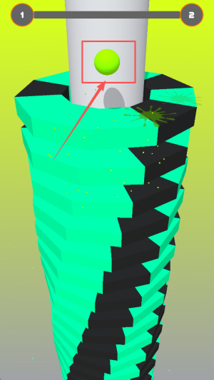 1、开启闯关准备:进入游戏后先熟悉小球的方向操控,明确“避开黑块、坠落至平台”的目标,同时了解螺旋平台的突破规则以及金币的获取方法。