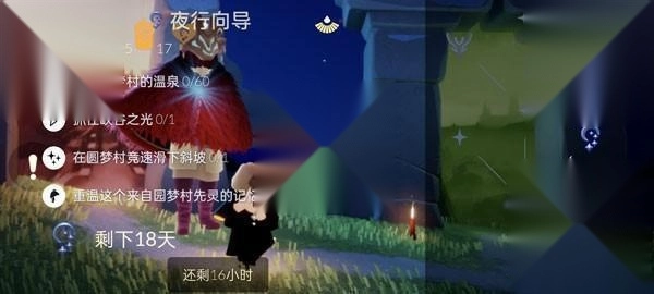 本次的季节地图在晨岛,到达之后往后面看有一个白圈 在白圈里面打坐进入黑夜模式,下面我们就一起找先祖吧!