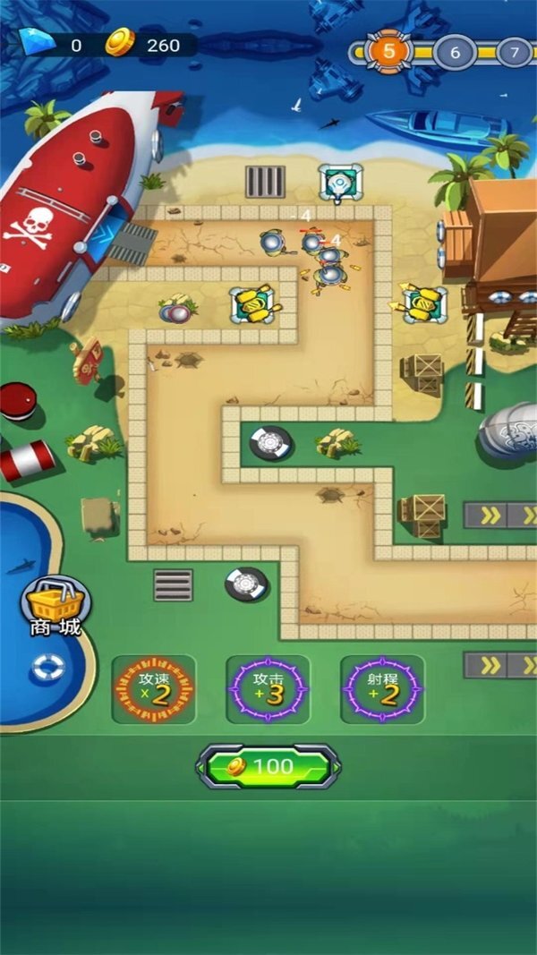 1、让我们与敌人交锋,守护好海岸线,逐步积累我们的成果。 2、不要让任何人侵犯你的领地,属性能够被解锁并免费使用。
