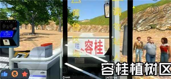5、公路旁连接着低矮山坡下的泥巴路,沿途树木繁茂、绿荫如盖。行至容桂植树区时,会有等候乘车的乘客,请注意停靠站点。