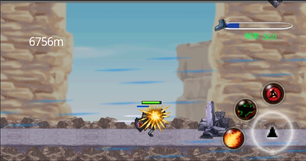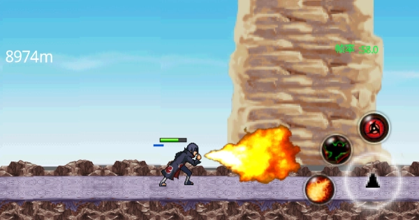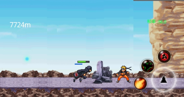 4.在跑酷的过程中,除了要躲避各种障碍,还会遇到敌人,只有释放忍术才能够将他们击败。