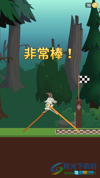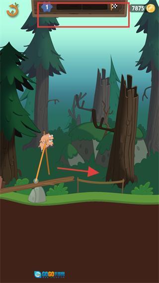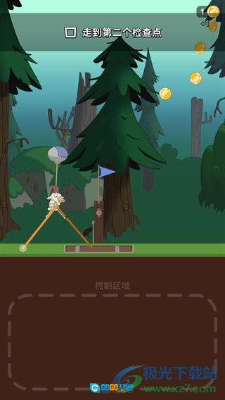 1、进入关卡后,目标是到达终点(有旗帜标识),需要操控角色移动,避开场景里的木桩障碍,朝着终点方向前进。
