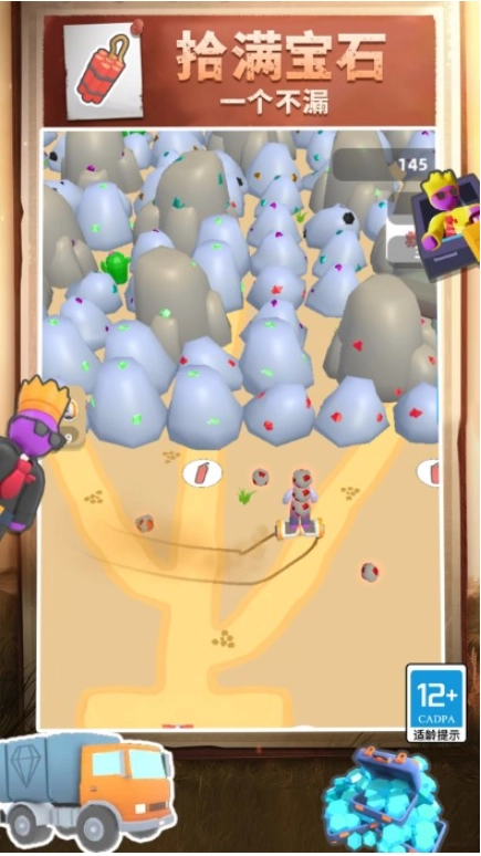 1、在游戏里借助炸药开展各类爆破操作,有着十分有趣的挑战体验,能够获取大量矿石以及部分宝石,将这些资源收集起来进行售卖后,玩家就能解锁更多休闲娱乐的玩法,玩得越久就越能感受到其中的乐趣。